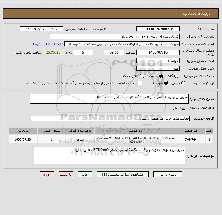 شرح کلی نیاز: سرویس و اورهال مورد نیاز 8 دستگاه کلید تپ چنجر RIII1200Y
