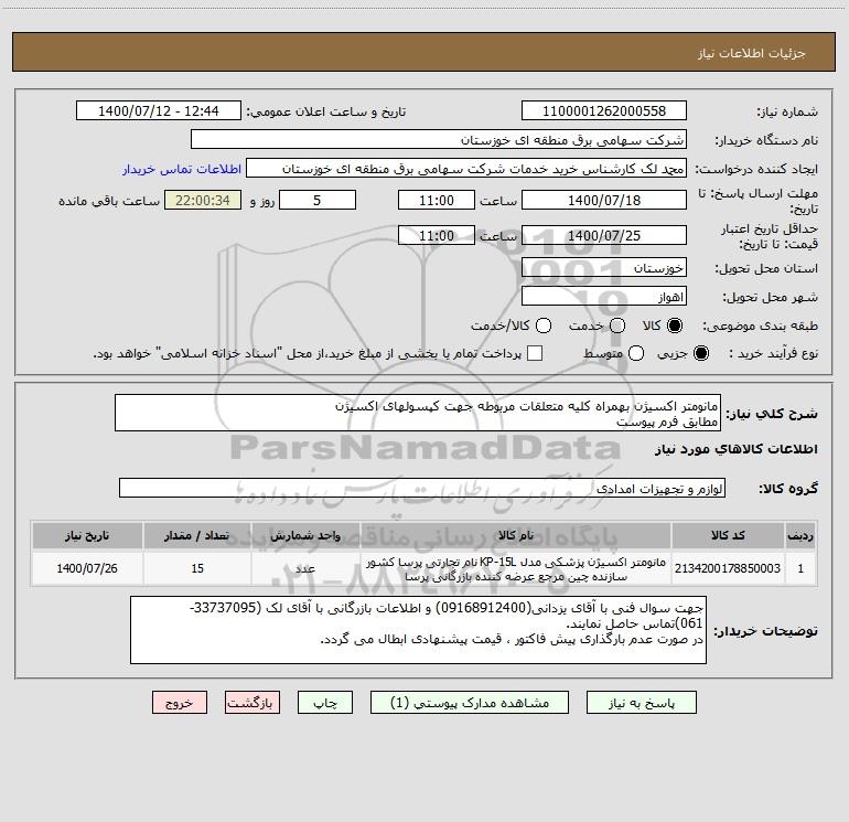 نام دستگاه خریدار:شرکت سهامی برق منطقه ای خوزستان