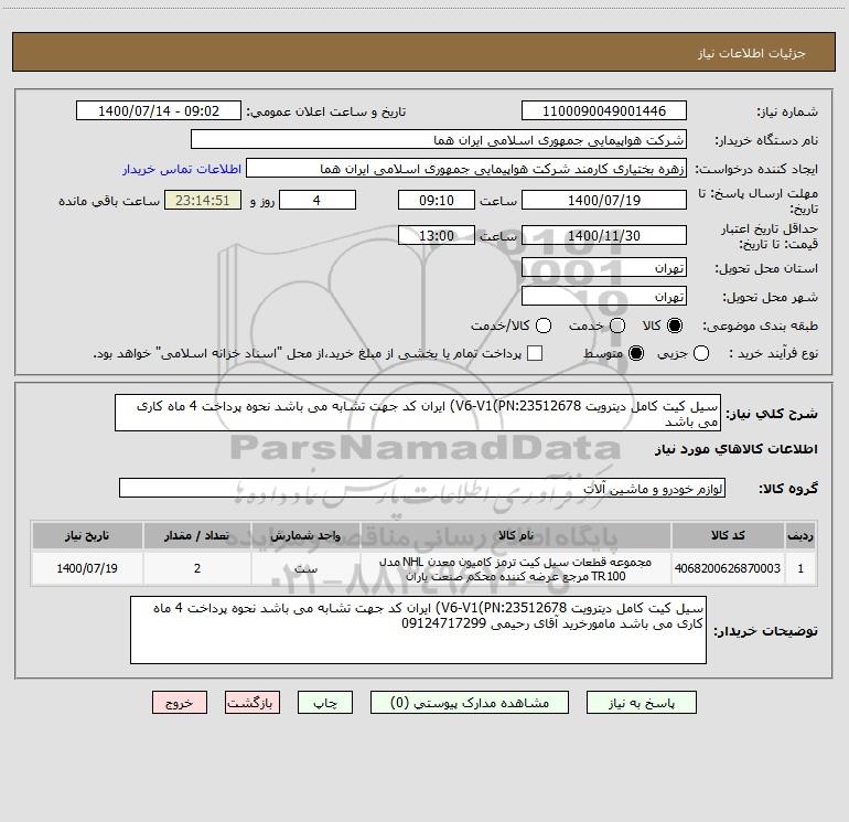 شرح کلی نیاز: سیل کیت کامل دیترویت V6-V1(PN:23512678) ایران کد جهت تشابه می باشد نحوه پرداخت 4 ماه کاری می باشد