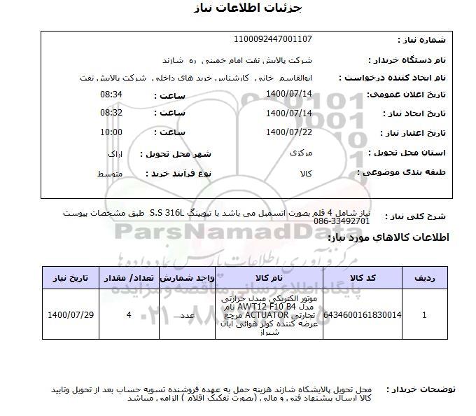 شماره نیاز: 1100092447001107