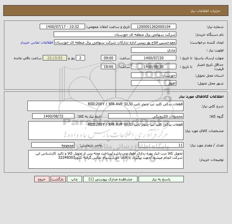 نام دستگاه خریدار:شرکت سهامی برق منطقه ای خوزستان