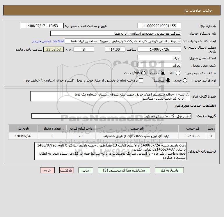 نام دستگاه خریدار:شرکت هواپیمایی جمهوری اسلامی ایران هما