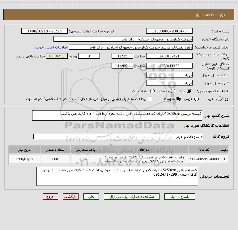 نام دستگاه خریدار:شرکت هواپیمایی جمهوری اسلامی ایران هما