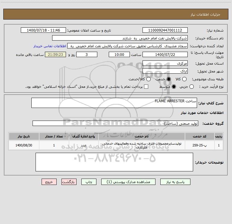 شرح کلی نیاز: ساخت FLAME ARRESTER