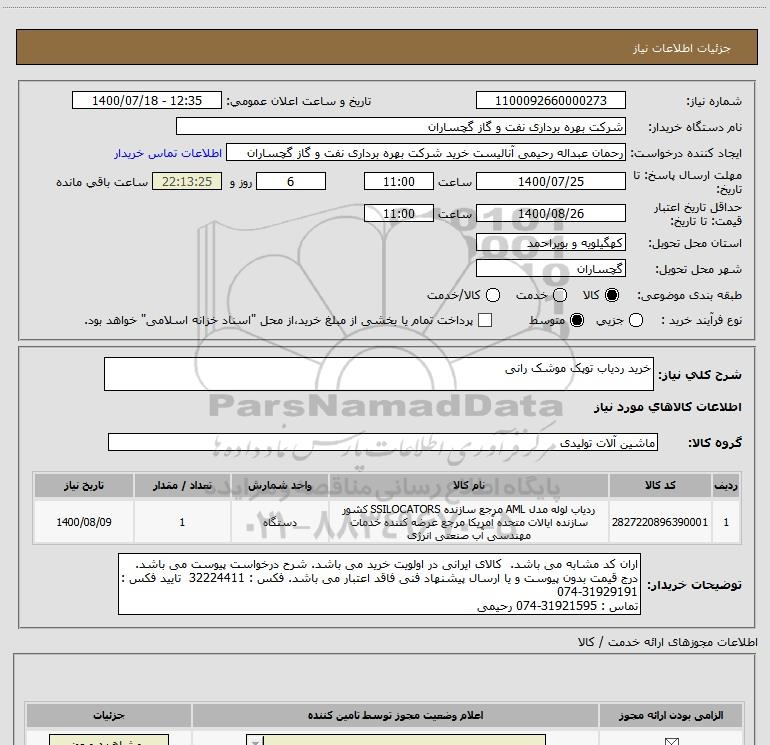 نام دستگاه خریدار:شرکت بهره برداری نفت و گاز گچساران