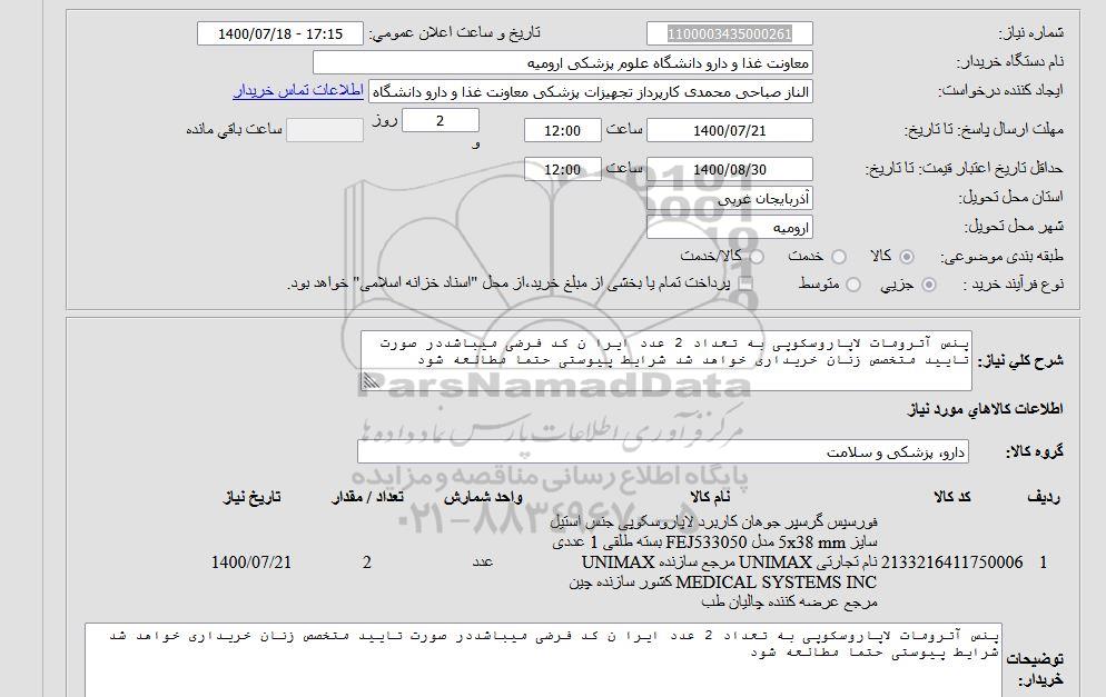 نام دستگاه خریدار:معاونت غذا و دارو دانشگاه علوم پزشکی ارومیه