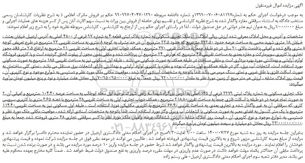 شعبه صادر کننده:شعبه سوم اجرای احکام مدنی دادگستری شهرستان اردبیل