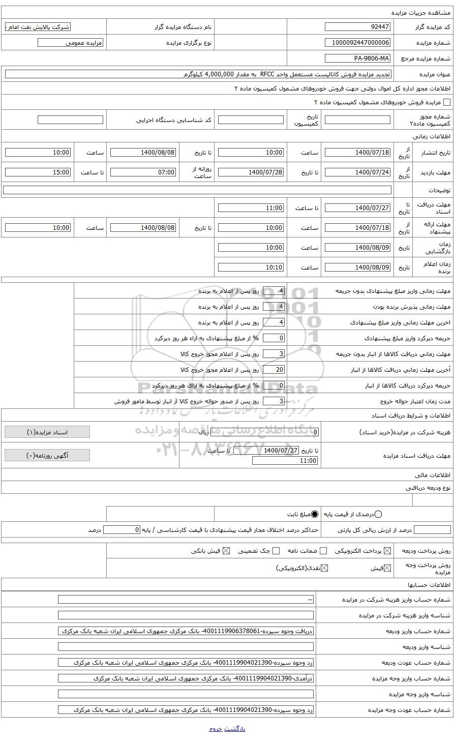 | شماره مزایده مرجع | PA-9806-MA | |||