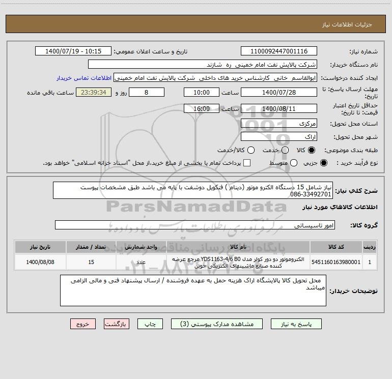 شماره نیاز: 1100092447001116