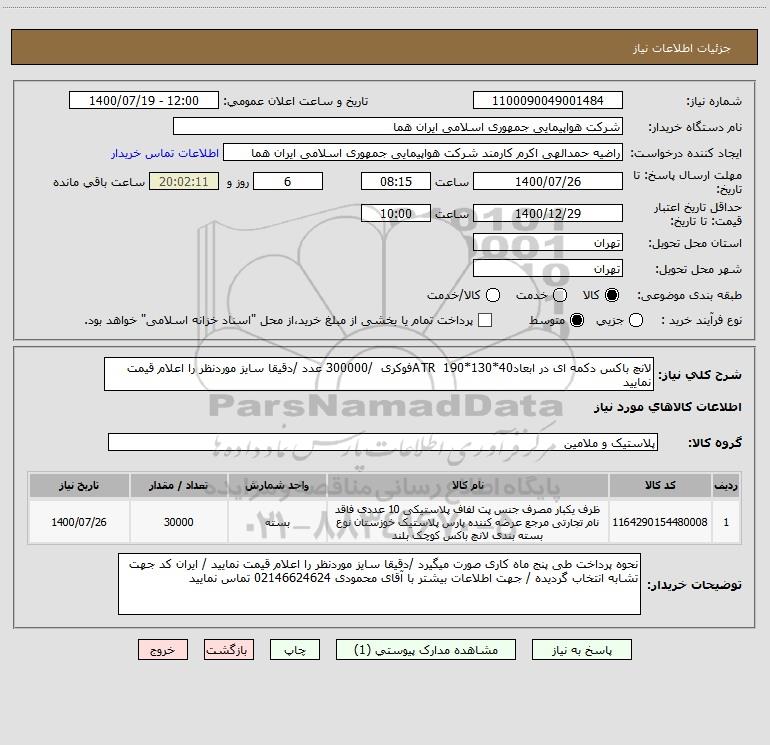 نام دستگاه خریدار:شرکت هواپیمایی جمهوری اسلامی ایران هما