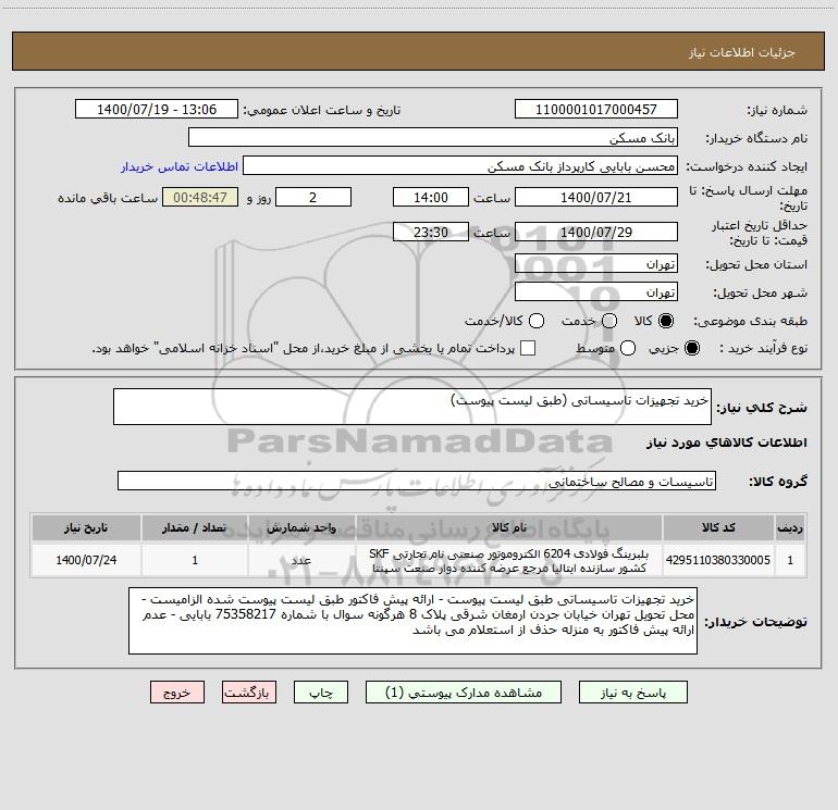 شرح کلی نیاز: خرید تجهیزات تاسیساتی (طبق لیست پیوست)