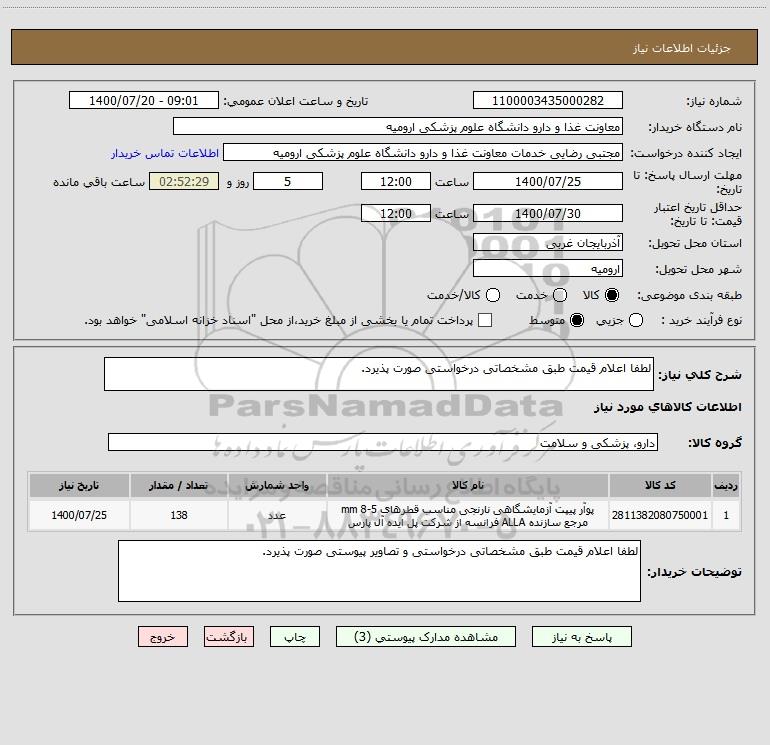 نام دستگاه خریدار:معاونت غذا و دارو دانشگاه علوم پزشکی ارومیه