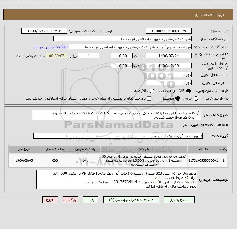 نام دستگاه خریدار:شرکت هواپیمایی جمهوری اسلامی ایران هما