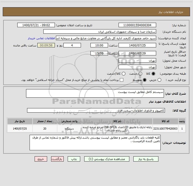 شرح کلی نیاز: سیستم کامل مطابق لیست پیوست