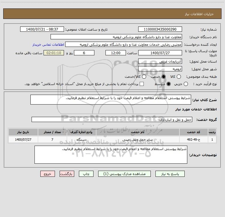 توضیحات خریدار:شرایط پیوستی استعلام مطالعه و اعلام قیمت خود را با شرایط استعلام تنظیم فرمایید.