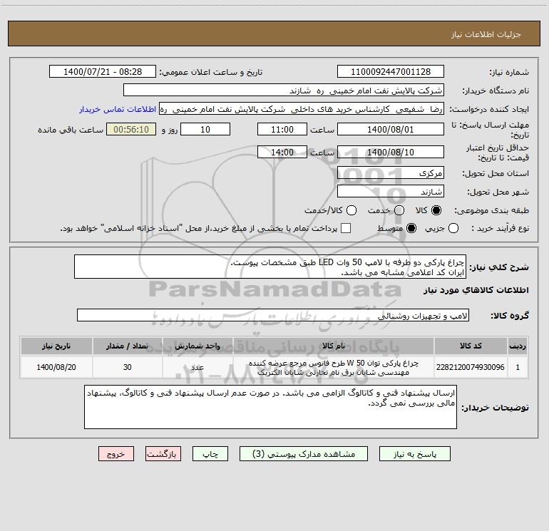 استعلام چراغ پارکی دو طرفه با لامپ 50 وات LED طبق مشخصات پیوست. ایران کد اعلامی مشابه می باشد., استعلام چراغ پارکی دو طرفه با لامپ 50 وات LED طبق مشخصات پیوست. ایران کد اعلامی مشابه می باشد.