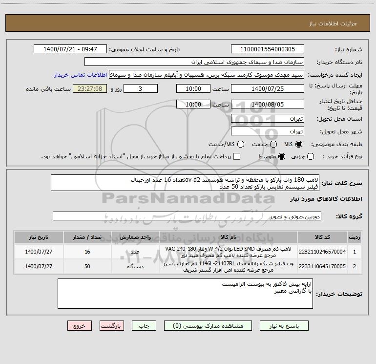 نام دستگاه خریدار:سازمان صدا و سیمای جمهوری اسلامی ایران