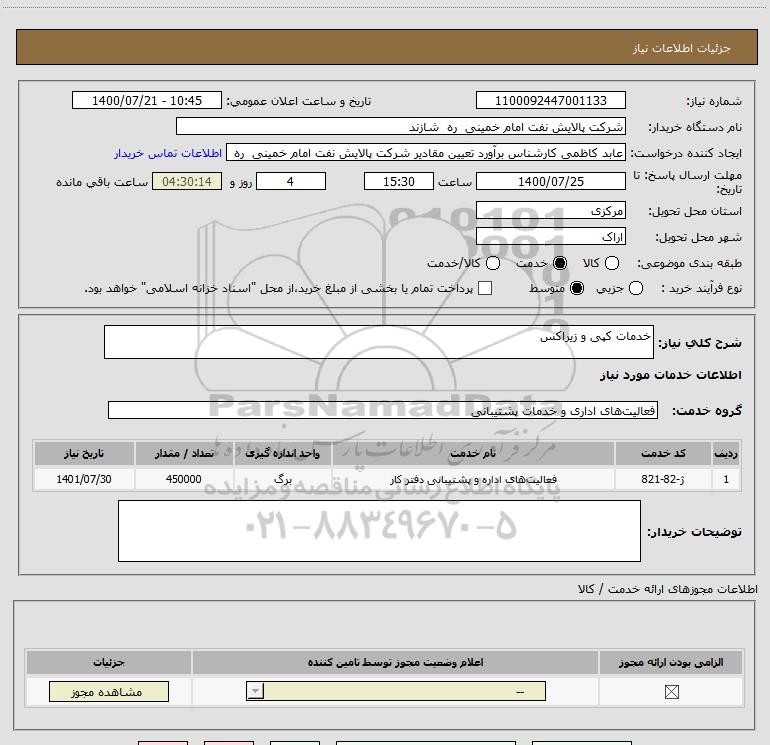 شرح کلی نیاز: خدمات کپی و زیراکس