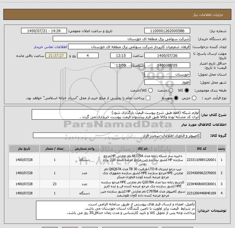 شرح کلی نیاز: لوازم شبکه (فقط طبق شرح پیوست قیمت بارگذاری شود) ایران کد مشابه بوده وکالا طبق فرم پیشنهاد قیمت پیوست خریداری می گردد .