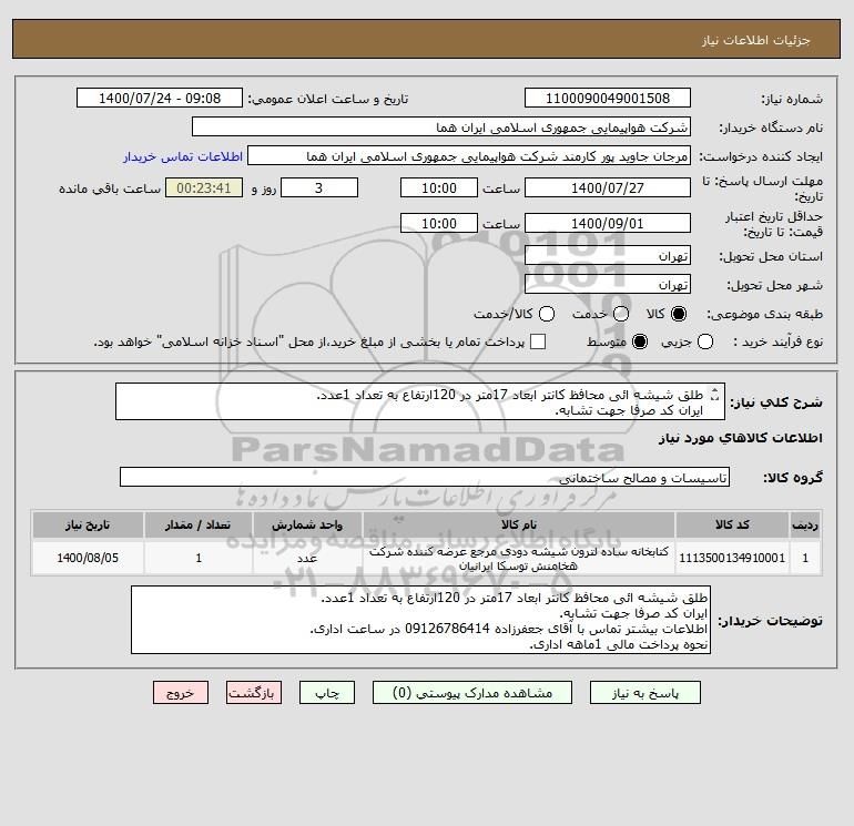 نام دستگاه خریدار:شرکت هواپیمایی جمهوری اسلامی ایران هما