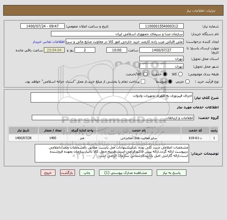 نام دستگاه خریدار:سازمان صدا و سیمای جمهوری اسلامی ایران