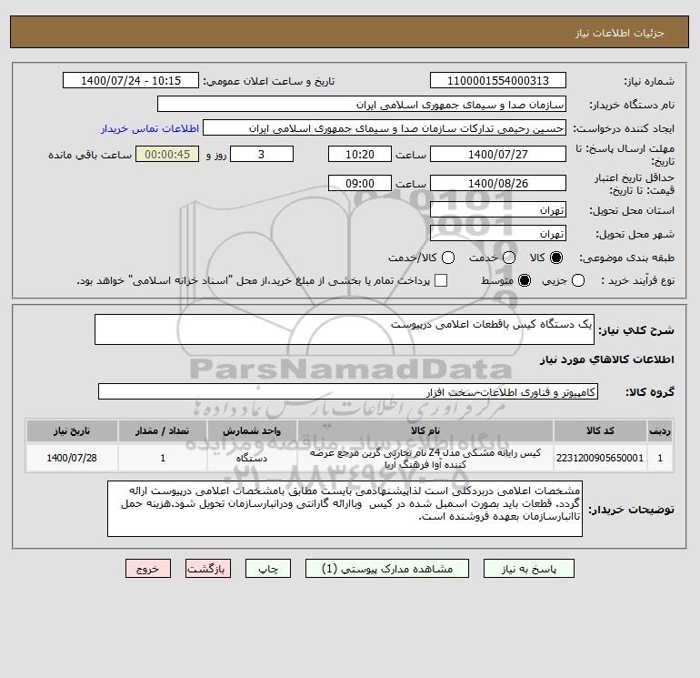 شرح کلی نیاز: یک دستگاه کیس باقطعات اعلامی درپیوست