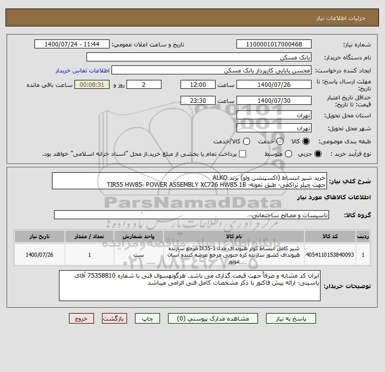 شرح کلی نیاز: خرید شیر انبساط (اکسپنشن ولو) برند ALKO
