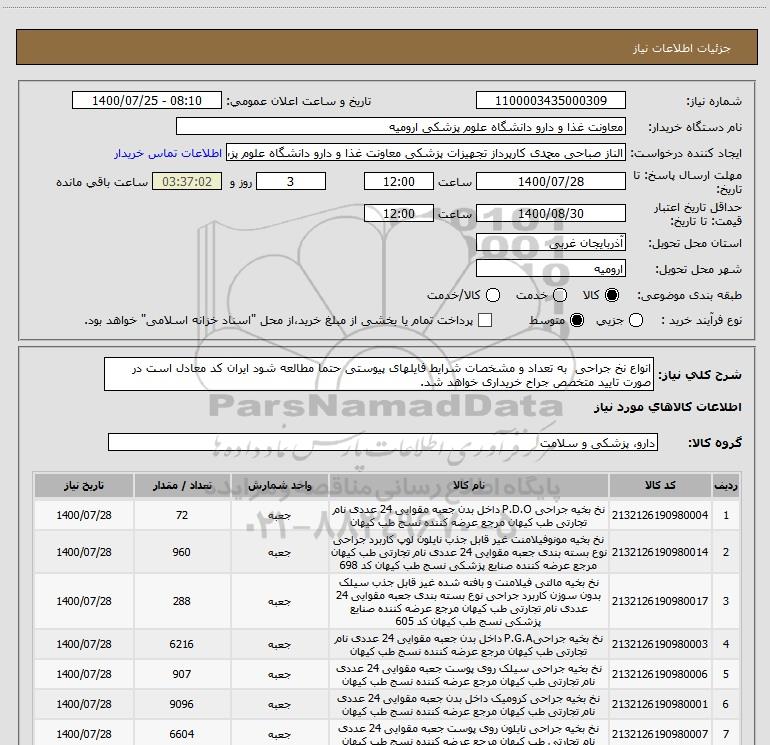 نام دستگاه خریدار:معاونت غذا و دارو دانشگاه علوم پزشکی ارومیه