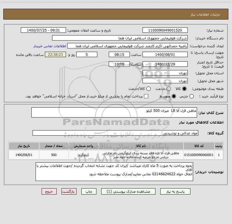 نام دستگاه خریدار:شرکت هواپیمایی جمهوری اسلامی ایران هما