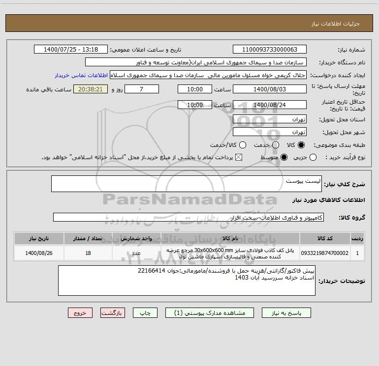 نام دستگاه خریدار: سازمان صدا و سیمای جمهوری اسلامی ایران(معاونت توسعه و فناور