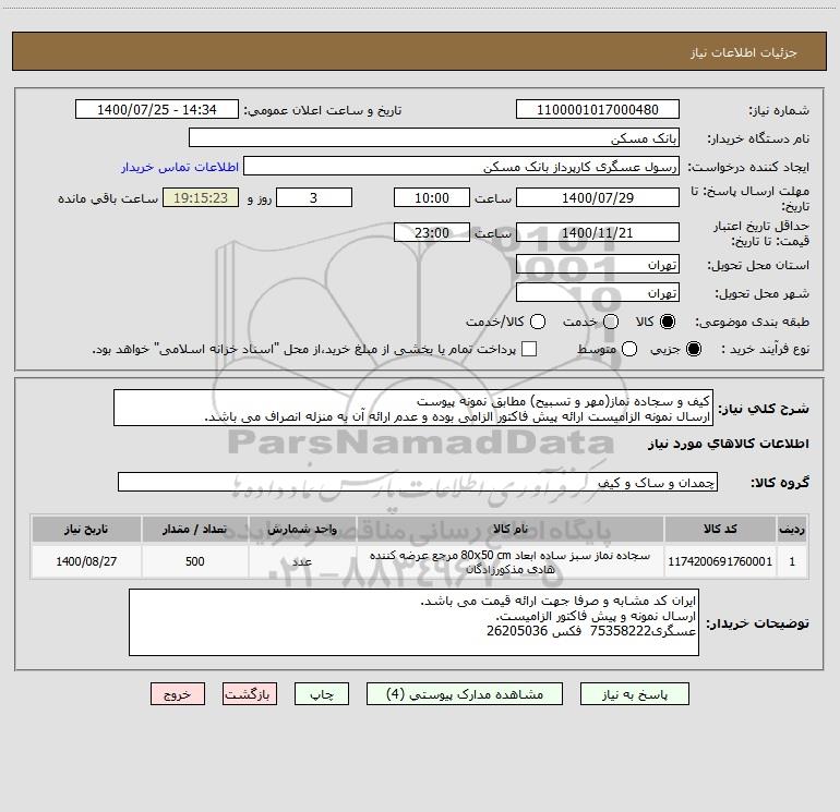 شرح کلی نیاز: کیف و سجاده نماز(مهر و تسبیح) مطابق نمونه پیوست