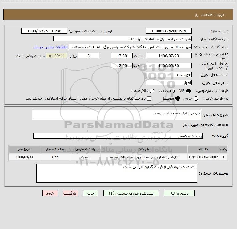 نام دستگاه خریدار:شرکت سهامی برق منطقه ای خوزستان