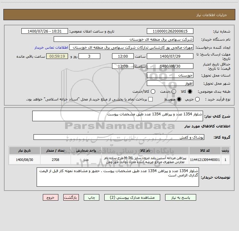 استعلام شلوار 1354 عدد و پیراهن 1354 عدد طبق مشخصات پیوست , استعلام شلوار 1354 عدد و پیراهن 1354 عدد طبق مشخصات پیوست