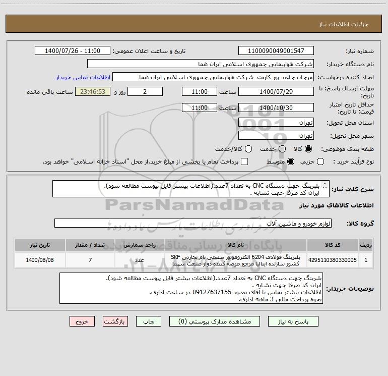 نام دستگاه خریدار:شرکت هواپیمایی جمهوری اسلامی ایران هما