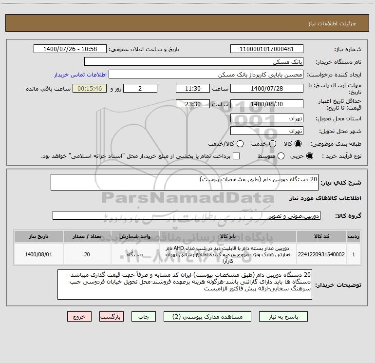 توضیحات خریدار:20 دستگاه دوربین دام (طبق مشخصات پیوست)-ایران کد مشابه و صرفاً جهت قیمت گذاری میباشد-دستگاه ها باید دارای گارانتی باشد-هرگونه هزینه برعهده فروشند-محل تحویل خیابان فردوسی جنب سرهنگ سخایی-ارائه پیش فاکتور الزامیست