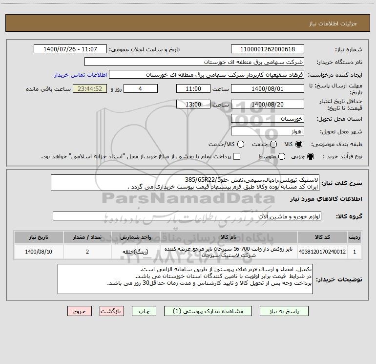 نام دستگاه خریدار:شرکت سهامی برق منطقه ای خوزستان