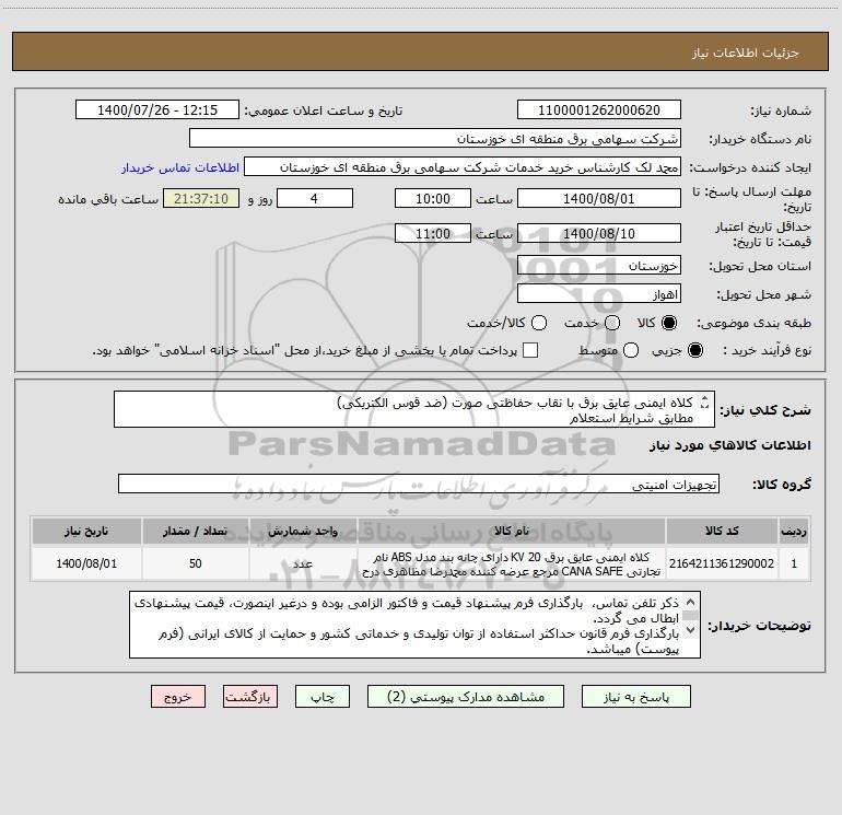 نام دستگاه خریدار:شرکت سهامی برق منطقه ای خوزستان