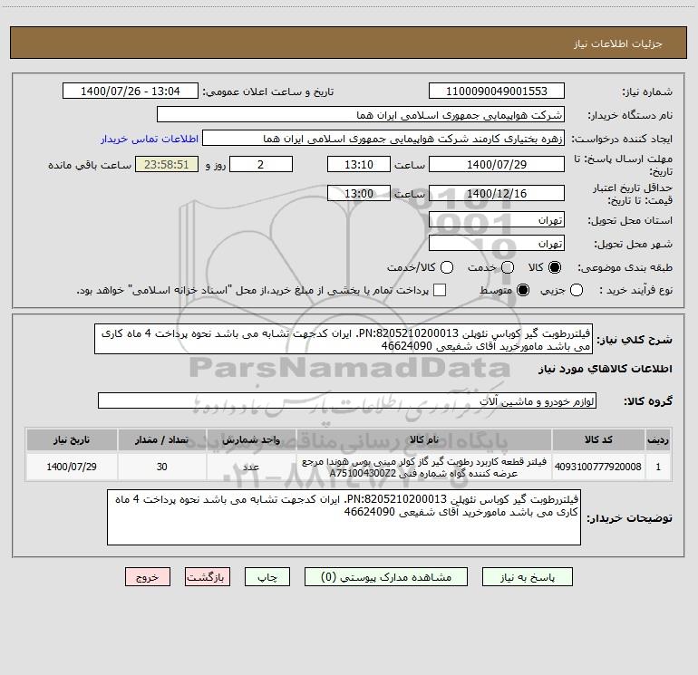 نام دستگاه خریدار:شرکت هواپیمایی جمهوری اسلامی ایران هما