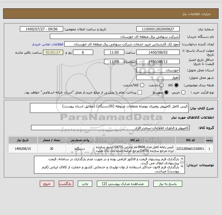 نام دستگاه خریدار:شرکت سهامی برق منطقه ای خوزستان