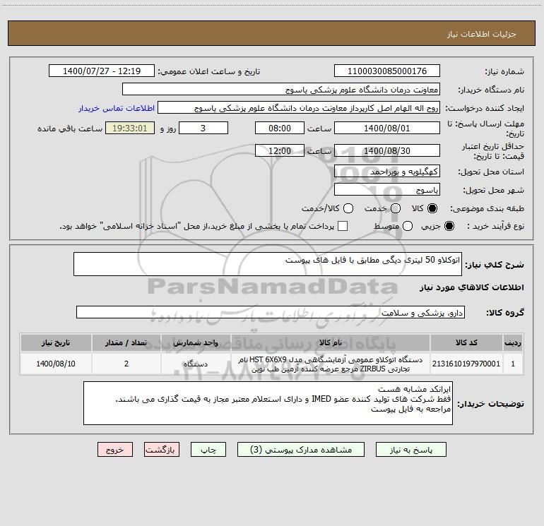 نام دستگاه خریدار:معاونت درمان دانشگاه علوم پزشکی یاسوج