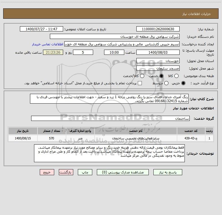 نام دستگاه خریدار:شرکت سهامی برق منطقه ای خوزستان