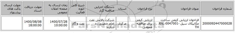 مناقصه، فراخوان ارزیابی کیفی ساخت مکانیکال سیل RNL-0047001-TH, فراخوان ارزیابی کیفی ساخت مکانیکال سیل RNL-0047001-TH