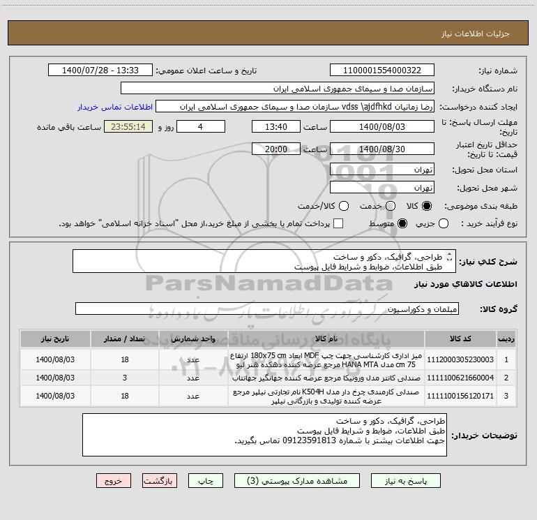 نام دستگاه خریدار:سازمان صدا و سیمای جمهوری اسلامی ایران
