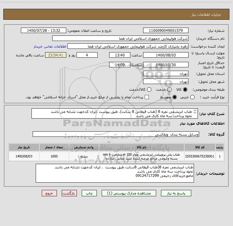 نام دستگاه خریدار:شرکت هواپیمایی جمهوری اسلامی ایران هما