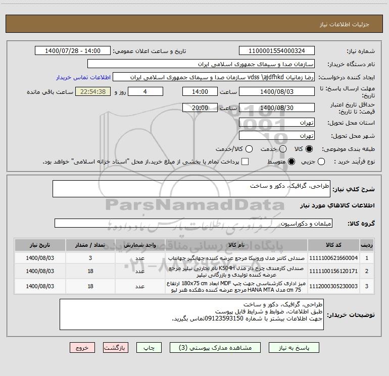 نام دستگاه خریدار:سازمان صدا و سیمای جمهوری اسلامی ایران
