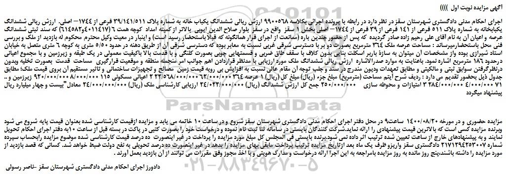 ((آگهی مزایده نوبت اول ))