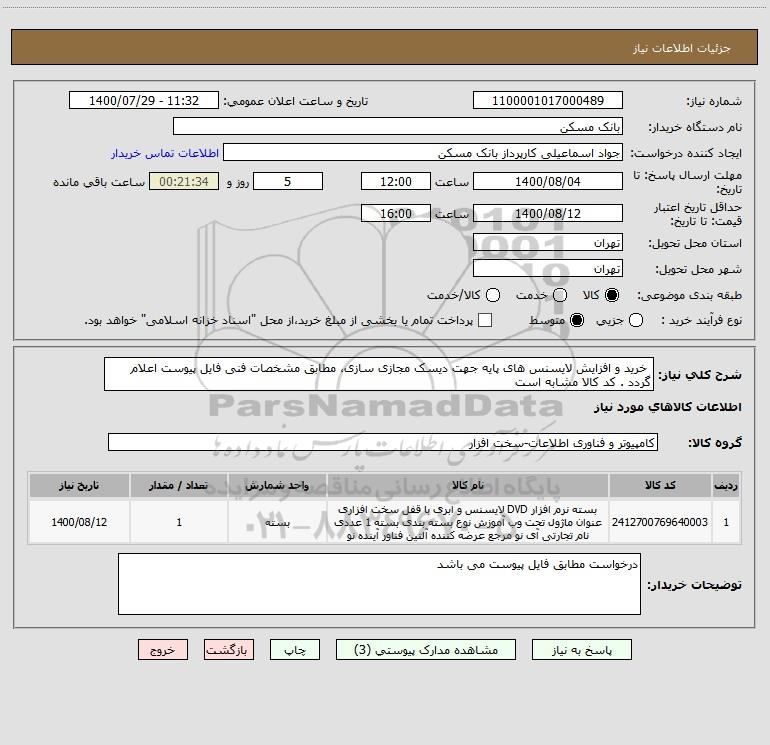 استعلام خرید و افزایش لایسنس های پایه جهت دیسک مجازی سازی، مطابق مشخصات فنی فایل پیوست اعلام گردد . کد کالا مشابه است, استعلام خرید و افزایش لایسنس های پایه جهت دیسک مجازی سازی، مطابق مشخصات فنی فایل پیوست اعلام گردد . کد کالا مشابه است