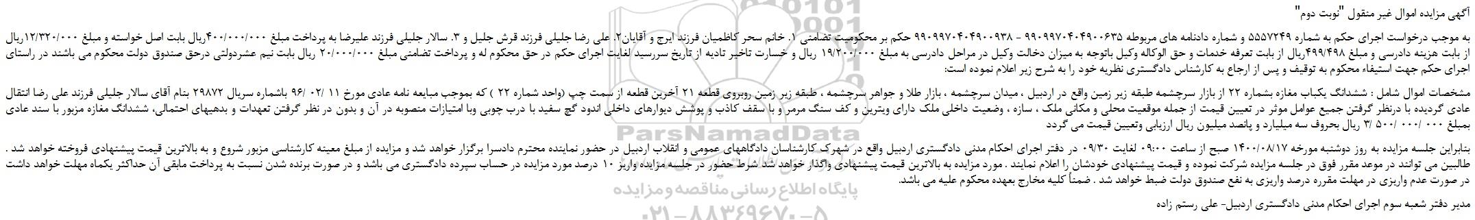 "آگهی مزایده اموال غیر منقول "نوبت دوم