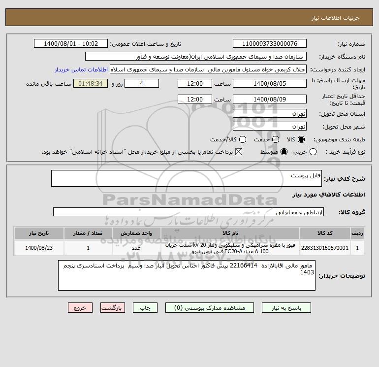 نام دستگاه خریدار: سازمان صدا و سیمای جمهوری اسلامی ایران(معاونت توسعه و فناور