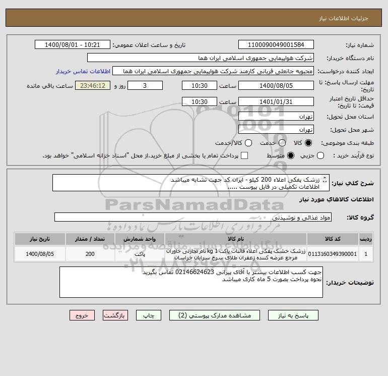نام دستگاه خریدار:شرکت هواپیمایی جمهوری اسلامی ایران هما